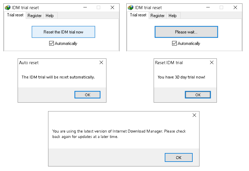 The latest version of IDM trial resetter tool offers an option to automatically reset IDMan trial every month, allowing indefinite trial extension without manual intervention