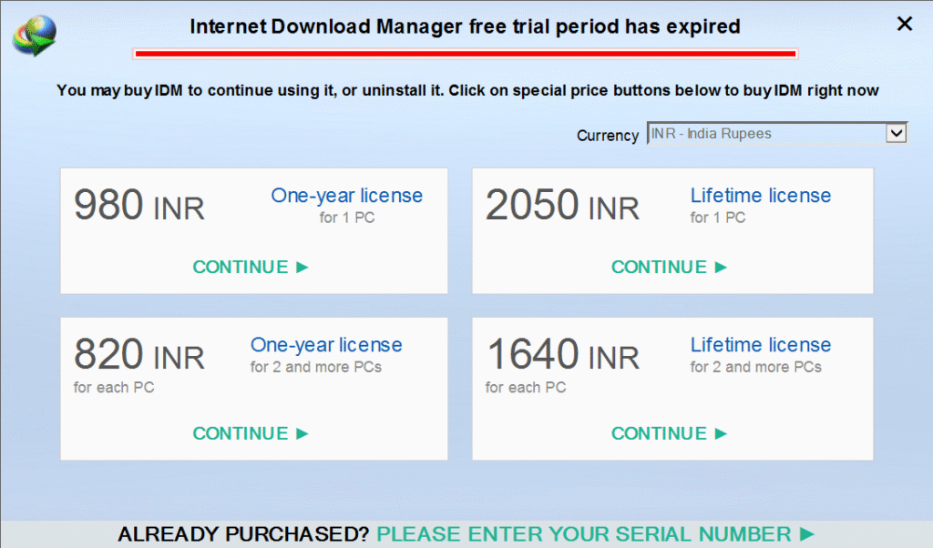 As of now, if you reset IDM trial using Resetter Tool, you will face Internet Download Manager free trial period has expired pop-up.